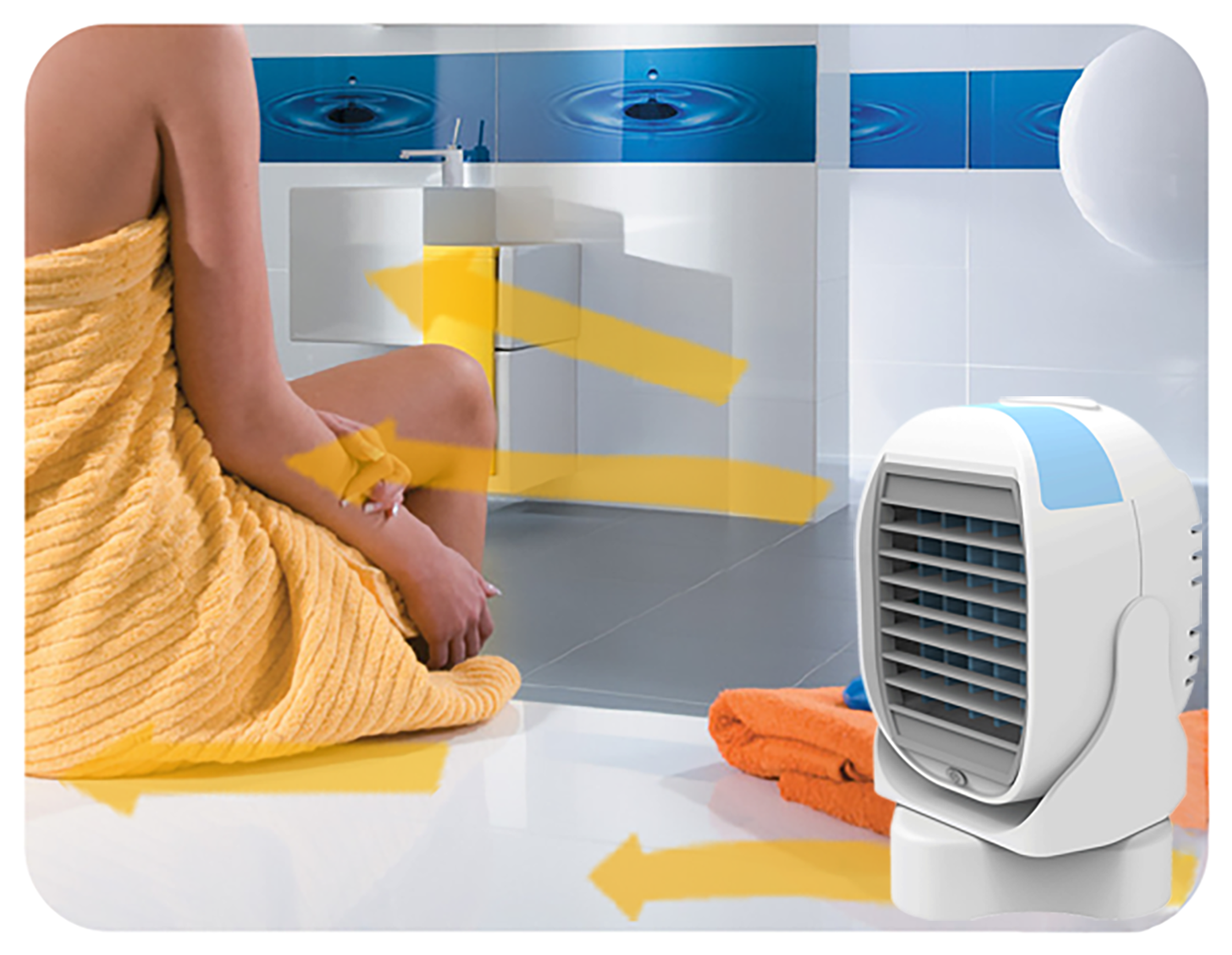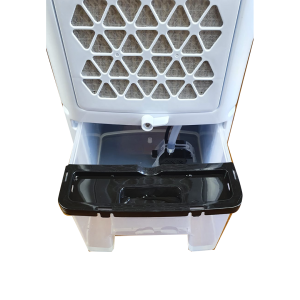 All’interno è presente, infatti, una ventola che aspira l’aria dall’ambiente circostante per dirigerla contro un pannello evaporativo tenuto continuamente bagnato grazie all’acqua o al ghiaccio collocati in un’apposita tanica interna.